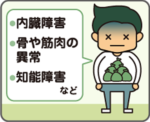 貯まる部分によって、内臓障害・骨や筋肉の異常、知能障害など様々な症状を引き起こす。